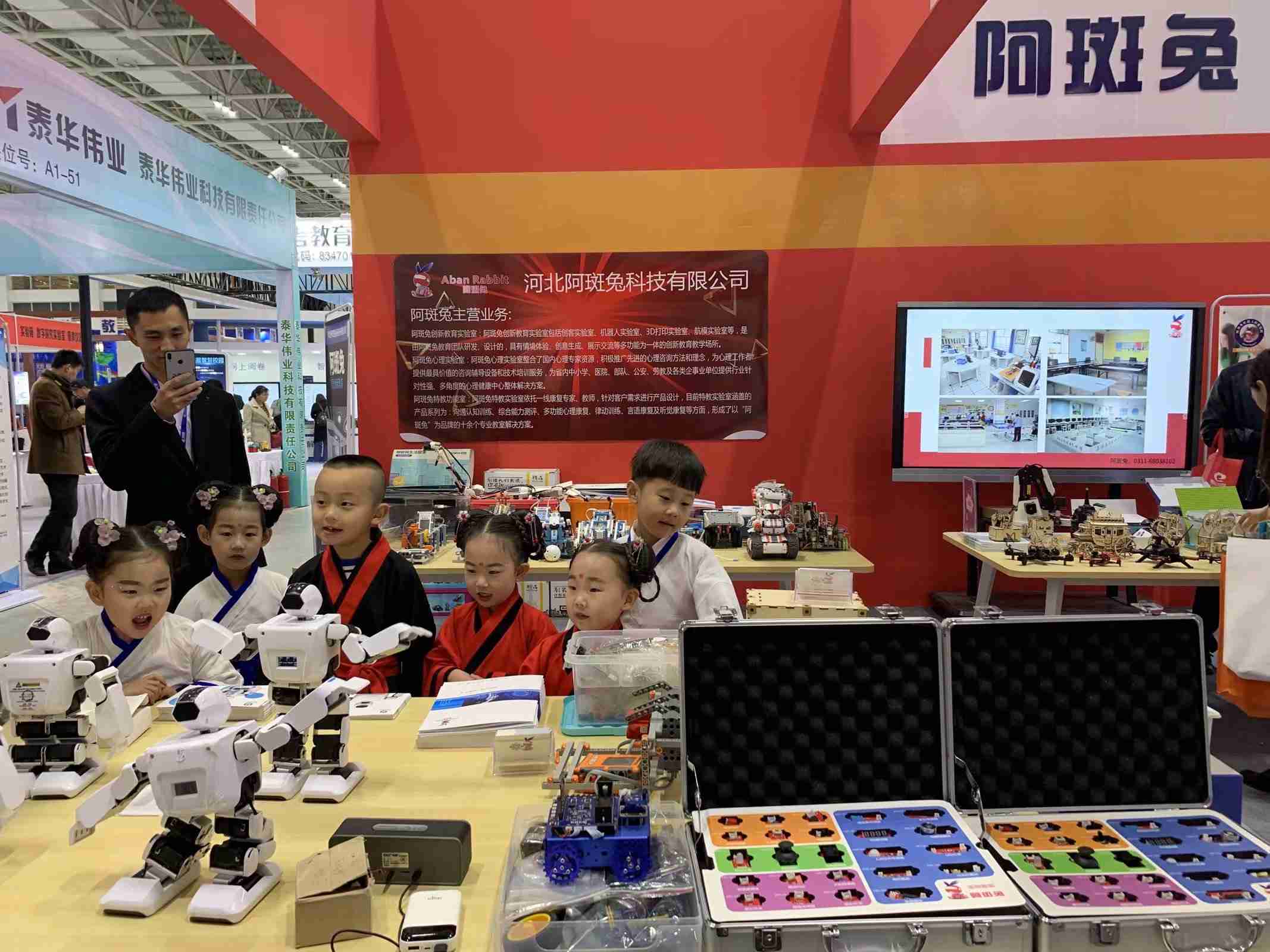 阿斑兔將機器人、創(chuàng)客、3D打印、航模等融為一體,研發(fā)、設計具有情景體驗、創(chuàng)意生成、原型制作、展示交流等多功能為一體的機器人教育教學場所,即創(chuàng)新教育實驗室,針對不同年齡段學生的特點、學校學情等,為其提供足夠的空間、設備和完善的課程體系。